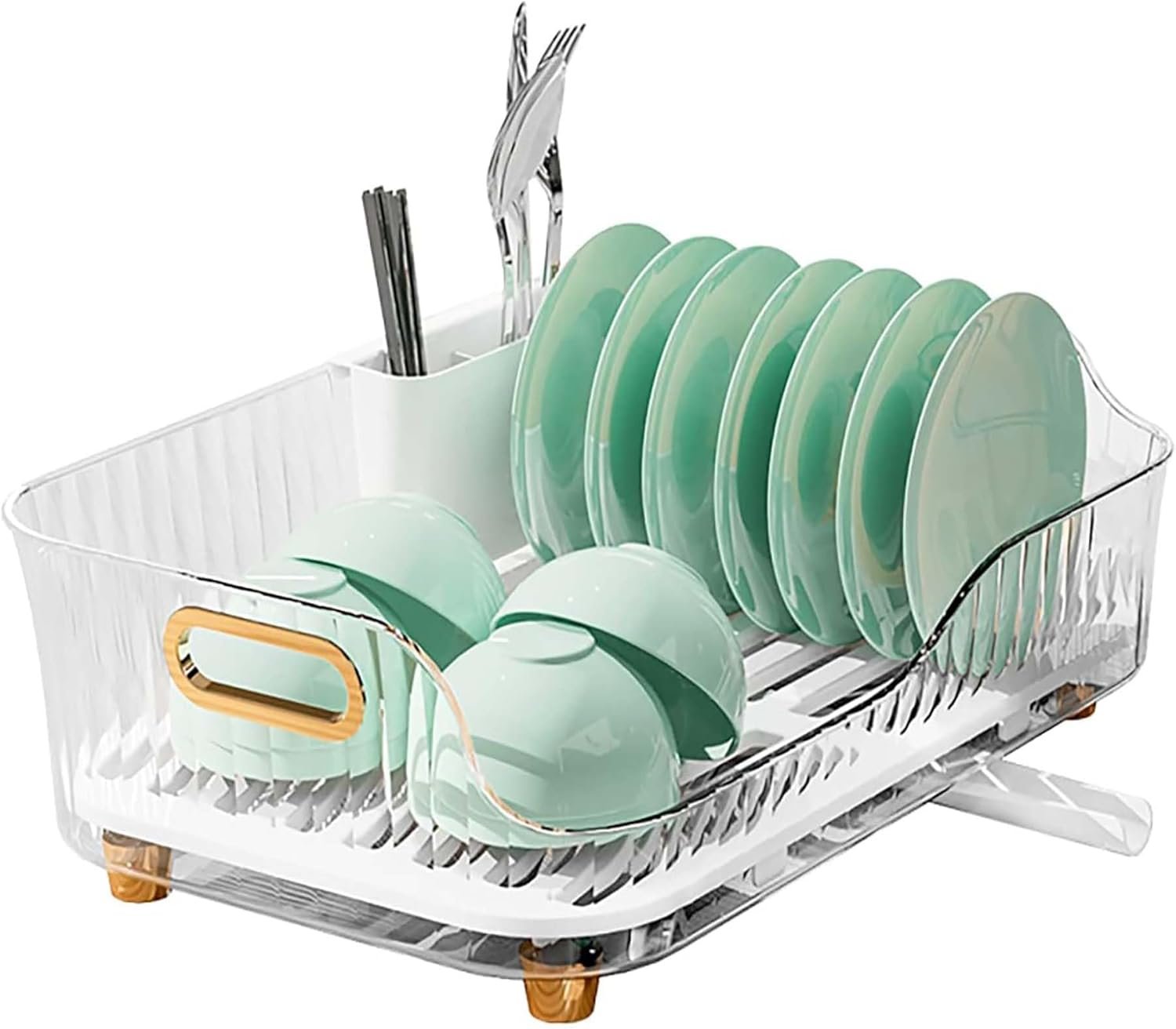 LargeDishDrainersforKitchenCounterwithDrainboardDishRacksforKitchenCounterPlasticSpaceSavingDishDryingRackCounterTop,Clear