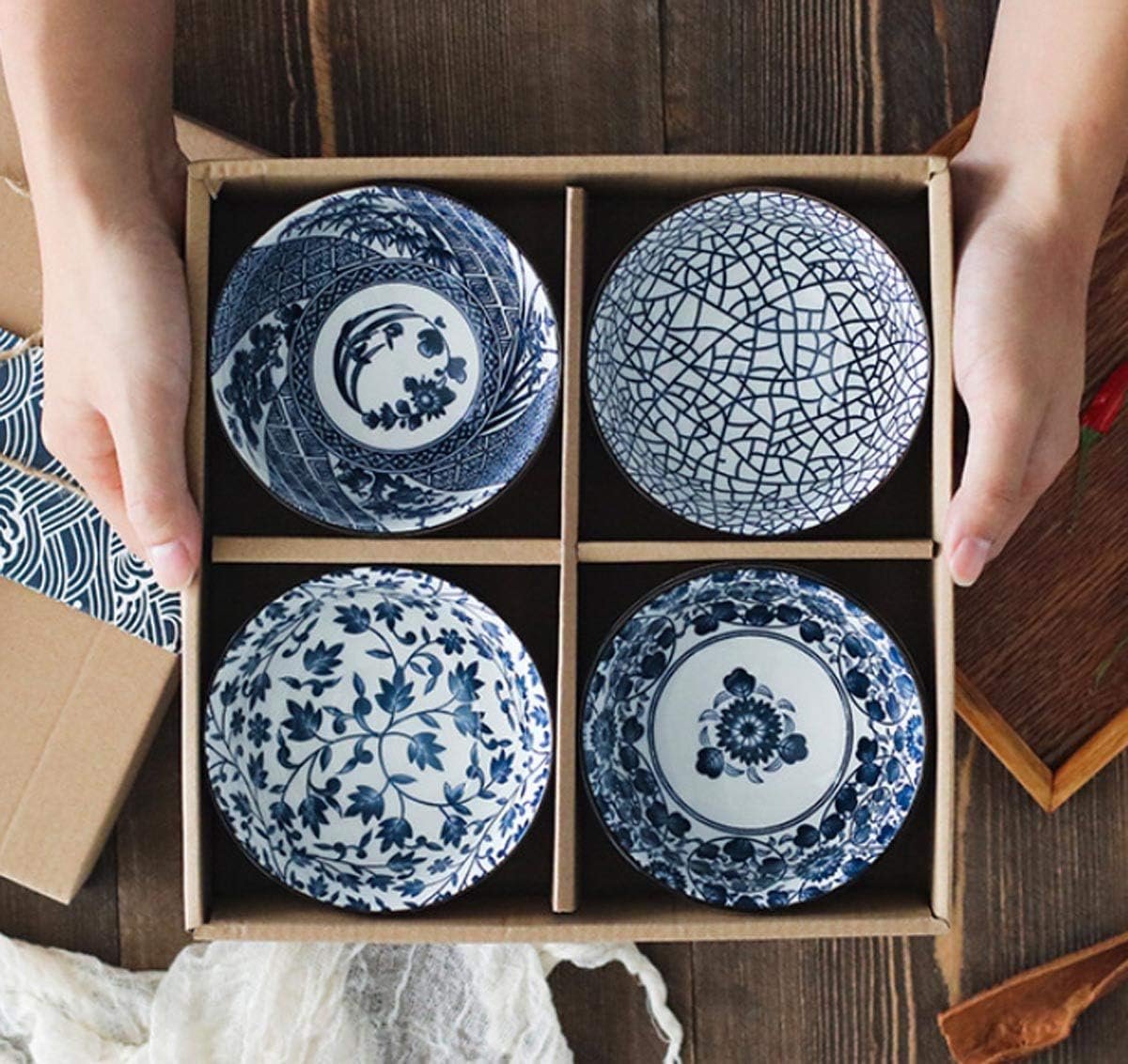 About this item New 4 Japanese Style Rice Bowl – Made of high quality ceramic and hand painted UnderglazeDiameter approximately: 4.5 inches, height: 2 1/2 inch. Ideal for Sushi, main entrees, side dishes, desserts, and snacks Cereal Soup.Dishwasher and microwave safe, can be stacked to save your cabinet space. – Lead and cadmium free, sturdy and durable, your dinnerware will be safe for daily use.These bowls makes a perfect gift item for house warming, birthdays, wedding, graduation, business gift or almost any occasion. ( Gift box is included)